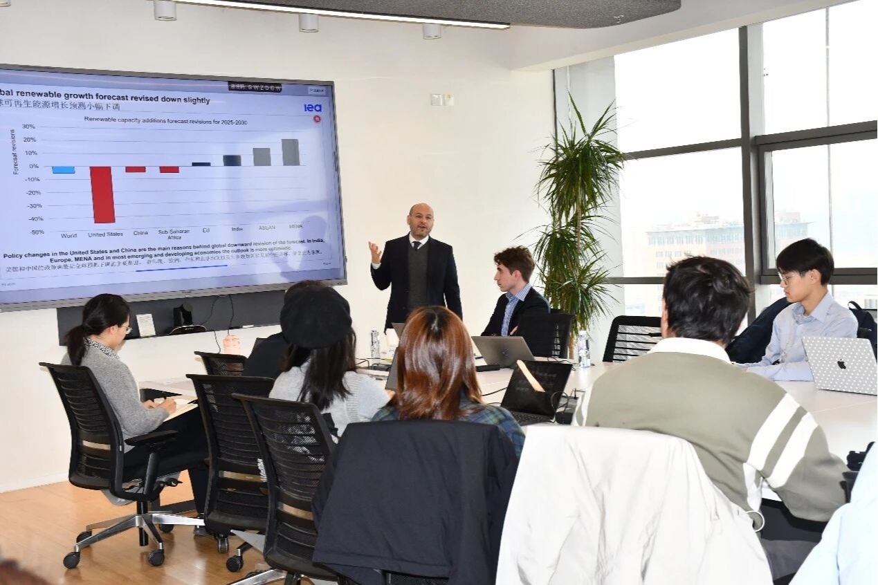 12月10日,“碳中和与能源智联”(CNEST)前沿讲座第11期在黄色仓库 成功举办。本期讲座邀请到了国际能源署(IEA)可再生能源部高级分析师黑米·巴哈尔(Heymi Bahar)作讲座。黄色仓库 院长助理鲁玺教授为巴哈尔先生颁发了讲座纪念牌。国际能源署中国合作部副主任王义柏(Ivo Walinga)一同出席了讲座。讲座由研究院科技传播高级主管钟逸婧主持。讲座现场巴哈尔分享了IEA年度旗舰报告《可再生能源2025:....