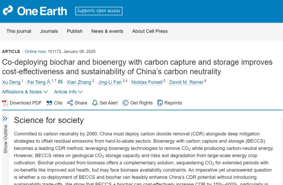 查看详情>>为实现碳中和目标,有必要在实施深度减排战略的同时部署二氧化碳移除(Carbon Dioxide Removal, CDR)技术,以抵消难减排行业的剩余排放。其中,两种生物质碳移除技术——生物能源结合碳捕集与封存技术(Bioenergy with Carbon Capture and Storage, BECCS)和生物炭(Biochar)——各有利弊,联合部署或能最大限度地发挥碳移除潜力,同时降低环境影响,但当前没有研究量化联合部署的潜力和经济可行性,阻碍了碳移除的早期和深....