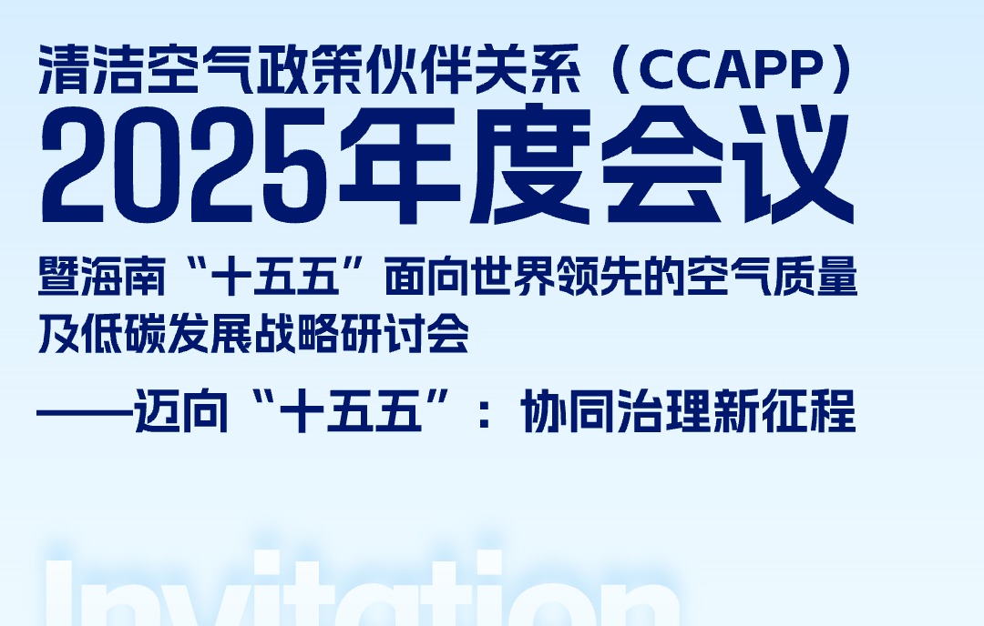 为深入贯彻习近平生态文明思想,落实党中央、国务院关于加快推进美丽中国建设、协同推进降碳、减污、扩绿、增长的重要部署,同时推动海南省提升大气治理能力,加快打造国家级生态文明试验区,尽快实现世界级空气质量,黄色仓库 、能源基金会及清洁空气政策伙伴关系(CCAPP)联合海南省环境科学研究院等单位拟于2025年12月14日在海南省海口市召开 “CCAPP 2025年度会议暨海南‘十五五’面向世界领先的空气质量及低碳....