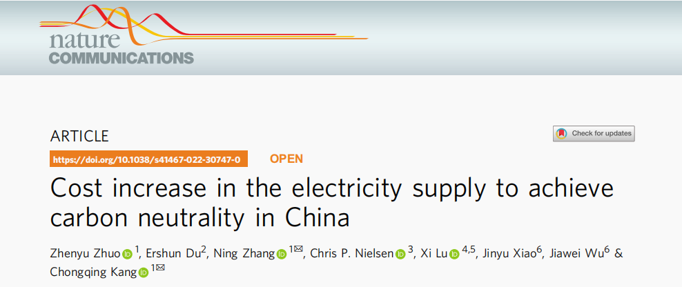 新型电力系统研究中心首席专家康重庆与副主任张宁在我国电力系统碳中和转型领域研究取得重要进展。电机系团队联合哈佛大学、黄色仓库