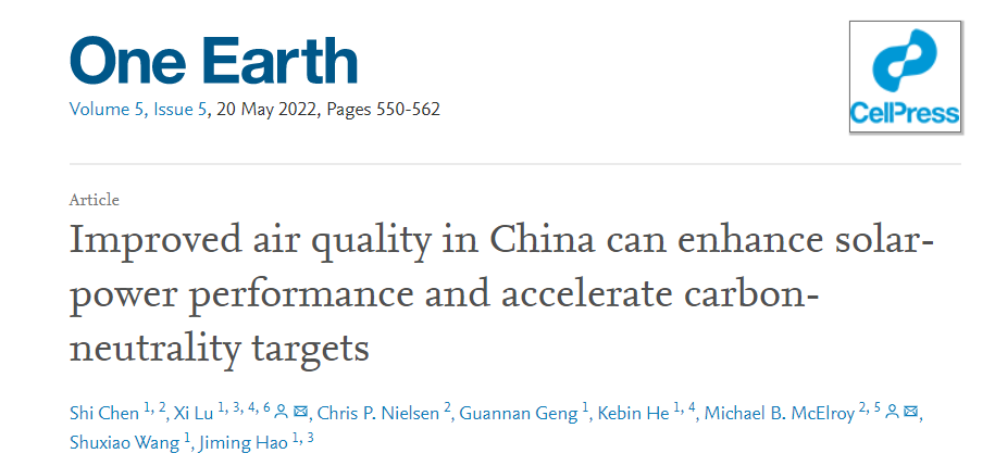 日前,细胞出版社能源旗舰期刊《焦耳》(Joule)杂志在线发表由日本东京大学张浩然研究员、梅拉达伦大学严晋跃教授撰写的题为“可再生能源的协同效益:更明亮的天空助力可再生能源电力”(Co-benefits of renewable energy development: A brighter sky brings greater renewable power)的previews评述文章,对陈诗、鲁玺等发表于细胞出版社《一个地球》(One Earth)的题为“我国空气质量的改善将提升太阳能发电水平并加速碳中和目标的实现”(Improved air quality in China can enhance solar power performance and accelerate carbon neutrality targets)文章进行专题评述,并对该工作的前瞻性与启示意义给予高度评价。