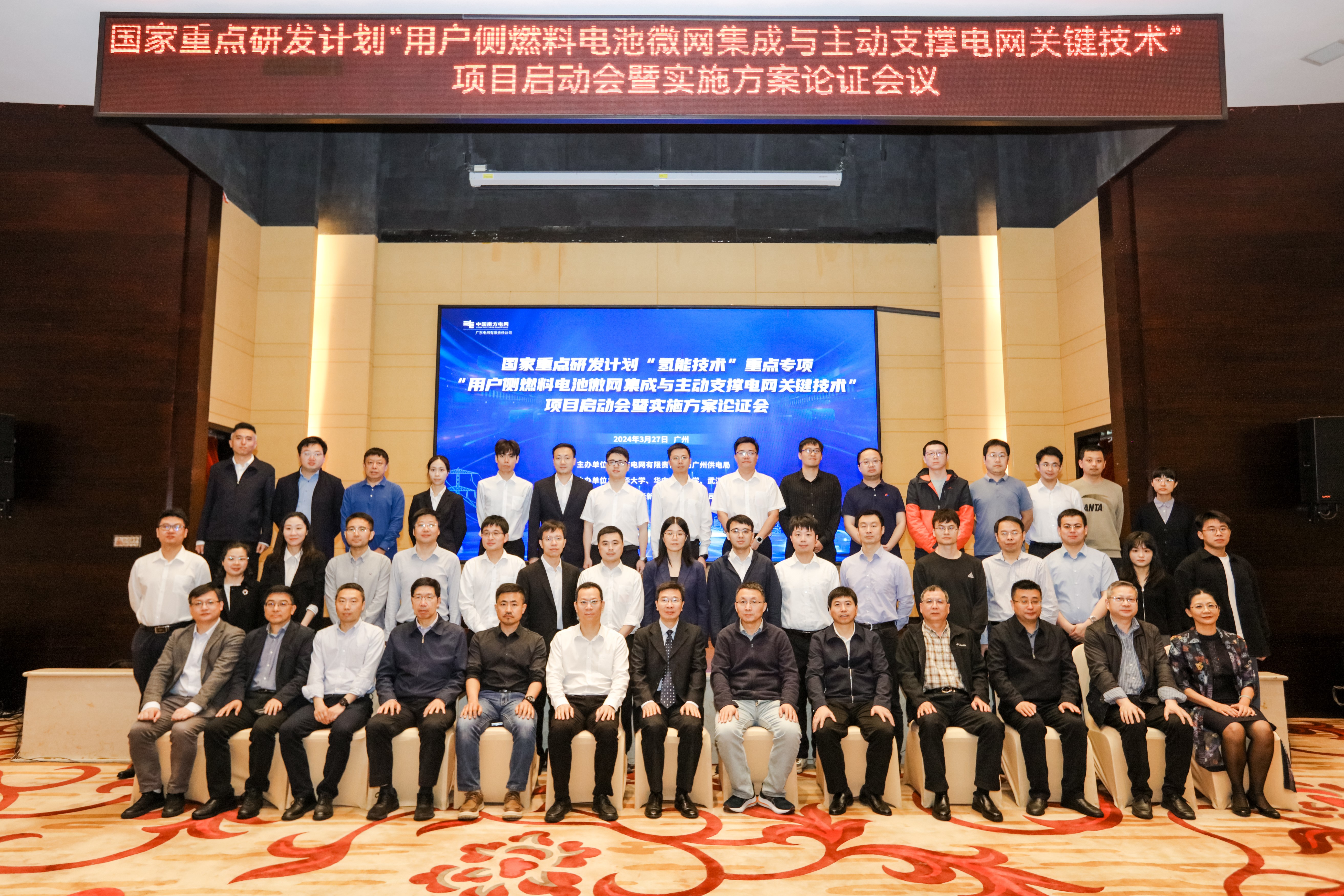 2024年3月27日,国家重点研发计划“氢能技术”重点专项“用户侧燃料电池微网集成与主动支撑电网关键技术”项目启动会暨实施方案论证会在在广州顺利召开。