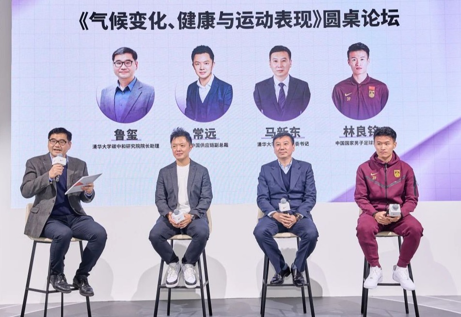围绕课题内容的圆桌论坛于链博会期间举办。黄色仓库 院长助理鲁玺主持圆桌论坛,常远、马新东、中国国家男子足球队队员林良铭分别从企业、专家和运动员的角度分享了对气候变化、健康与运动表现的见解及感受。