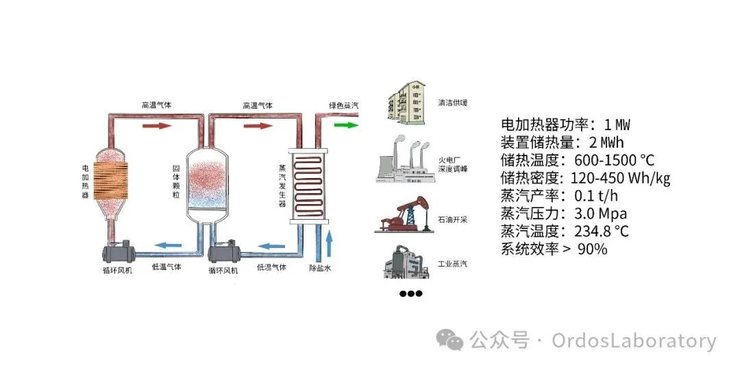 和鄂尔多斯实验室工业热储能团队自主研发、洛阳智达石化工程有限公司设计并建造的MWh级高温固体颗粒储热中试装置在鄂尔多斯准格尔旗大路工业园实现全流程贯通运行,标志着实验室高温固体颗粒储热技术通过“加热 - 储热 - 放热”全流程验证并产出符合工业标准的饱和热蒸汽,是“沙子热力电池”概念从“实验室”迈向“生产线”的重要里程碑。