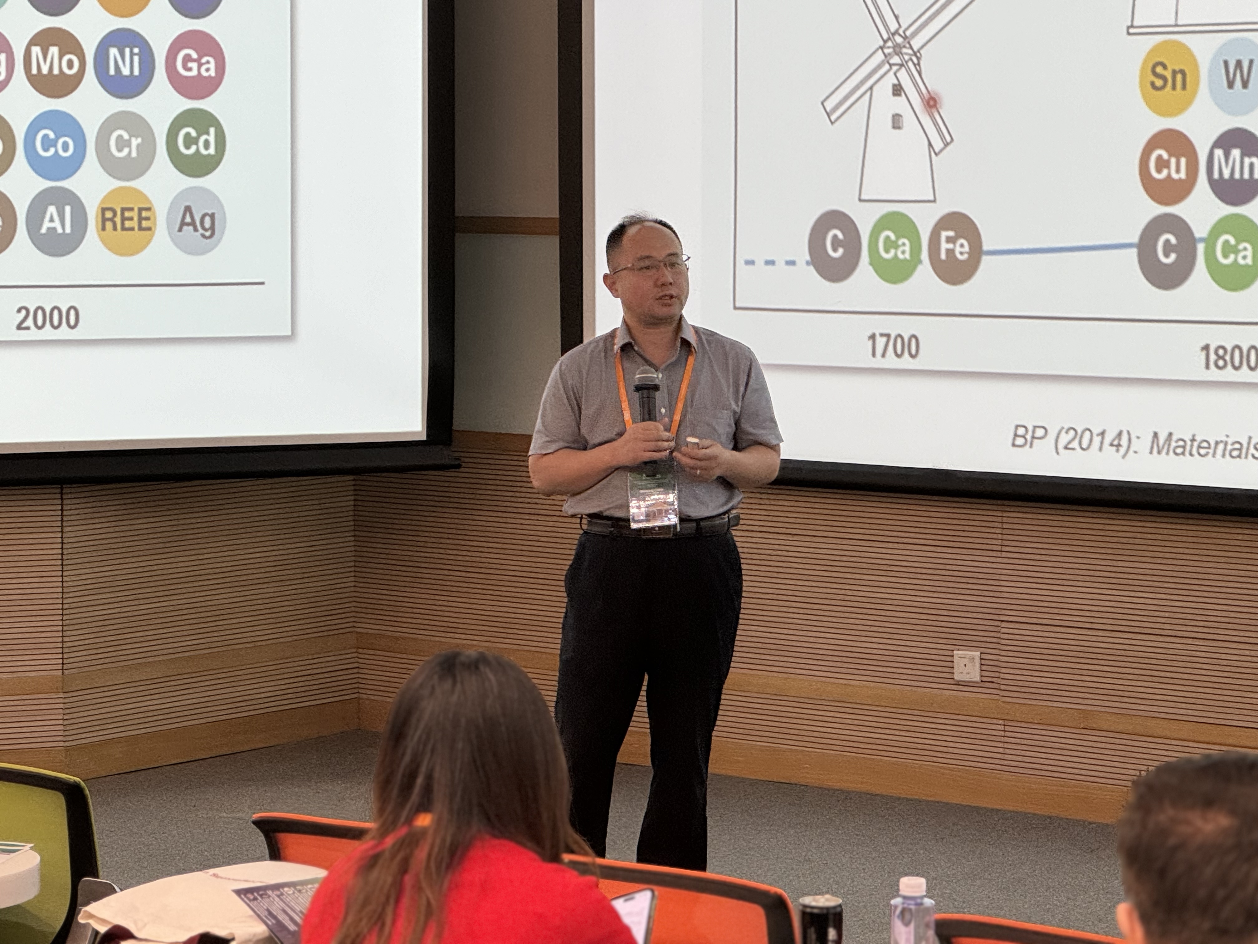 中国科学院城市环境研究所研究员陈伟强教授作了主旨报告《金属-能源的耦合与可持续性》。他指出电动车、风电、光伏等新能源技术属于材料密集型的技术,能源转型依赖多种金属和矿物的支撑,这些材料有着分散而复杂的全球供应链,有必要加强国际合作以促进供应链安全,并及时布局新能源废弃物高效回收与绿色循环技术。