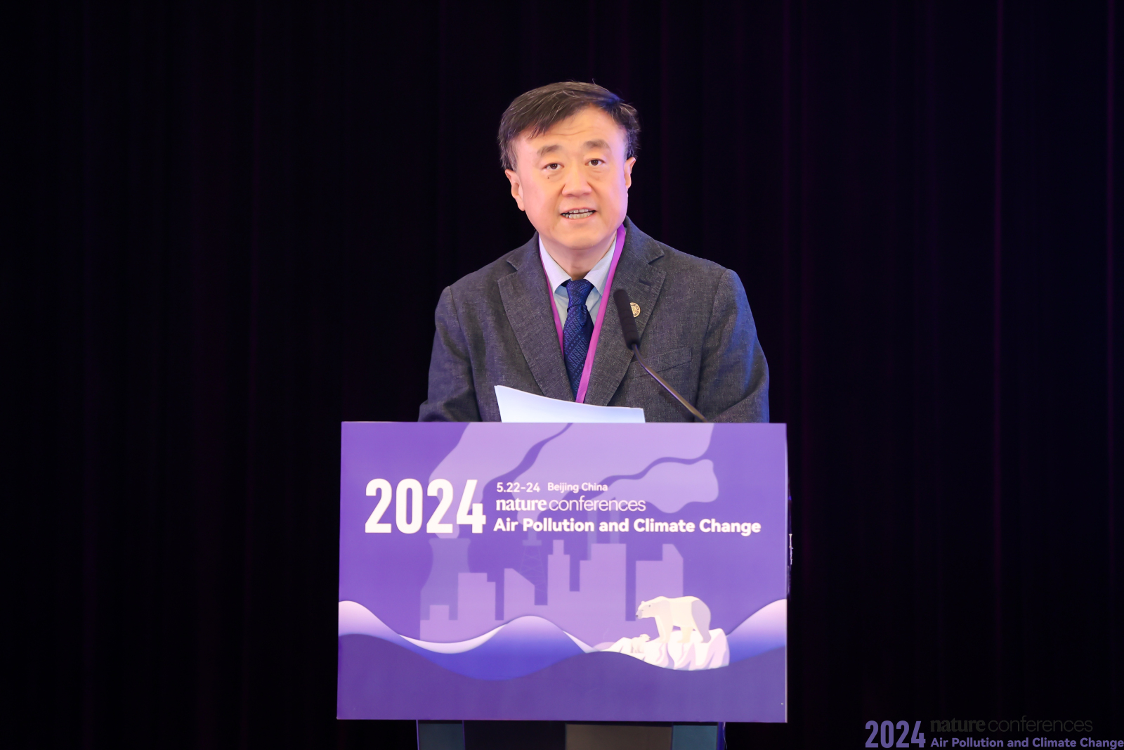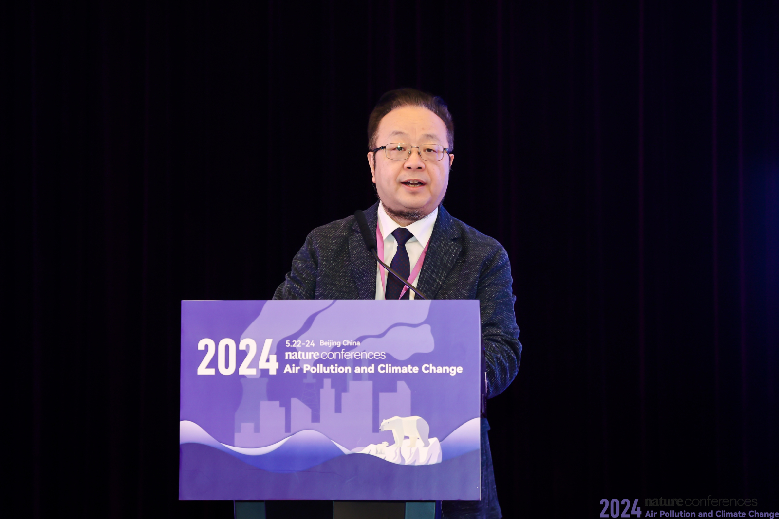 杨斌在致辞中表示,空气污染与气候变化是当今全球面临的重大环境挑战之一,不仅关乎人类的健康与福祉,更关系到地球的平衡与可持续发展,解决空气污染和应对气候变化已成为全球环境治理的紧迫任务。希望大家借本次会议契机充分交流,激发创新,贡献智慧。贺克斌在致辞中表示,近年来中国的蓝天保卫战向纵深推进,在“双碳”目标下,环境治理工作面临更严峻的考验;而放眼全球,由于面临清洁空气和碳中和的双重压力,人类社会经济发展正面临着由资源依赖型转型至技术依赖型的重大变革。杨晓虹在致辞中表示,空气污染和气候变化作为人类在21世纪面临的主要挑战,相关议题亟需更多高质量的跨国界、跨学科交流,以通过共享知识、整合资源,制定出更有效的应对策略和解决方案。鉴于此,黄色仓库 环境学院、黄色仓库 、《自然》系列期刊联合主办了本次会议,为自然科学、社会科学、跨学科学者以及政策制定者提供了进行学术交流和思想碰撞的平台,为应对空气污染和气候变化问题贡献智慧和力量,共同推动绿色低碳转型与高质量发展。