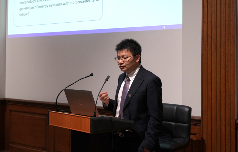鲁玺教授回顾了中国太阳能光伏技术的快速发展,指出在传统能源系统中,难以同时满足“安全可靠、经济可行、绿色低碳”三个目标,这也是能源“不可能三角”。他介绍了能源存储系统在稳定电网中的作用,并强调了与英国在可再生能源技术方面的合作潜力。