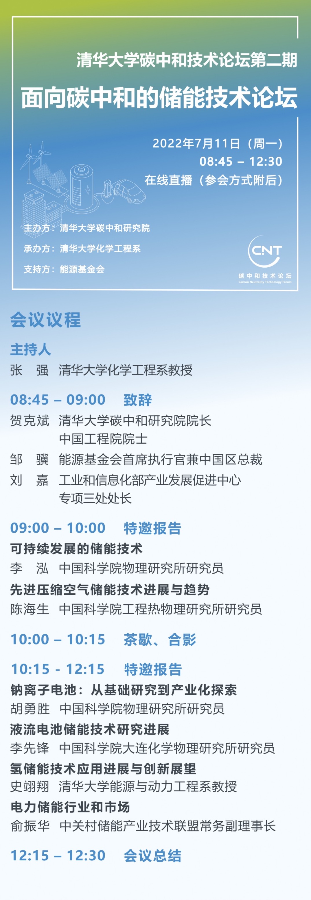 碳中和技术论坛——面向碳中和的储能技术,研讨储能技术发展过程中的关键问题。