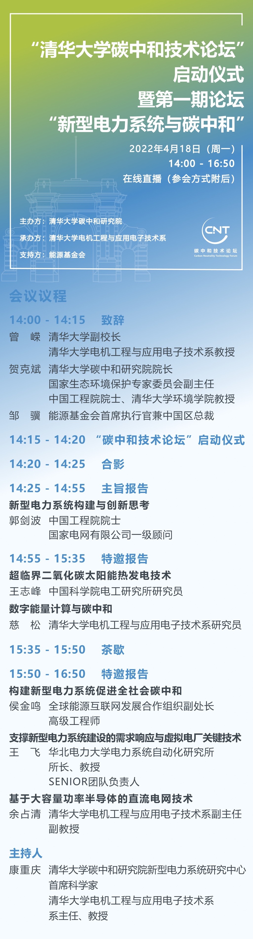 碳中和技术论坛”启动仪式暨第一期论坛“新型电力系统与碳中和”,探索建立适合中国国情、具有更强新能源消纳能力的新型电力系统,推动能源清洁低碳转型,助力实现碳达峰碳中和。
