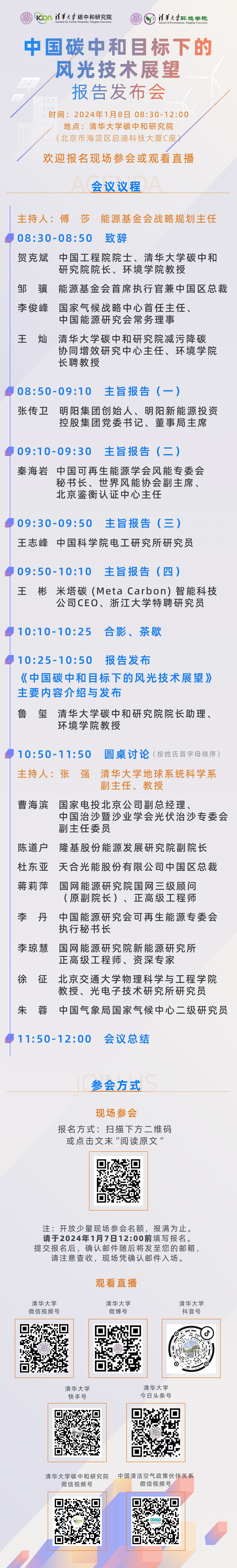牵头发起“中国碳中和目标下的风光技术展望”项目,旨在明确风、光发电等可再生能源发展面临的全产业链关键风险与挑战,识别风、光发电开发的内在优势与产业新机遇、新业态,为我国电力系统低碳转型提供数据支撑与科学指导。兹定于2024年1月8日(周一)上午8:30召开《中国碳中和目标下的风光技术展望》报告发布会,分享项目研究成果,展望风光技术发展路径、研讨其发展过程中的关键问题。