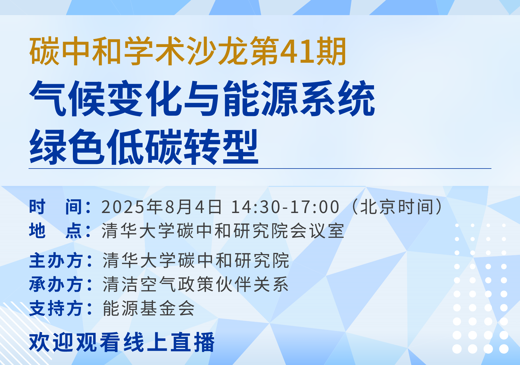 兹定于2025年8月4日14:30举办“气候变化与能源系统绿色低碳转型”学术沙龙,聚焦气候变化背景下能源系统转型进程中存在的关键发展问题并展开深入探讨,为有序推进能源结构持续优化与降碳减污协同治理提供系统性指南,为中国“双碳”背景下能源系统的清洁低碳和可持续发展提供专业见解。