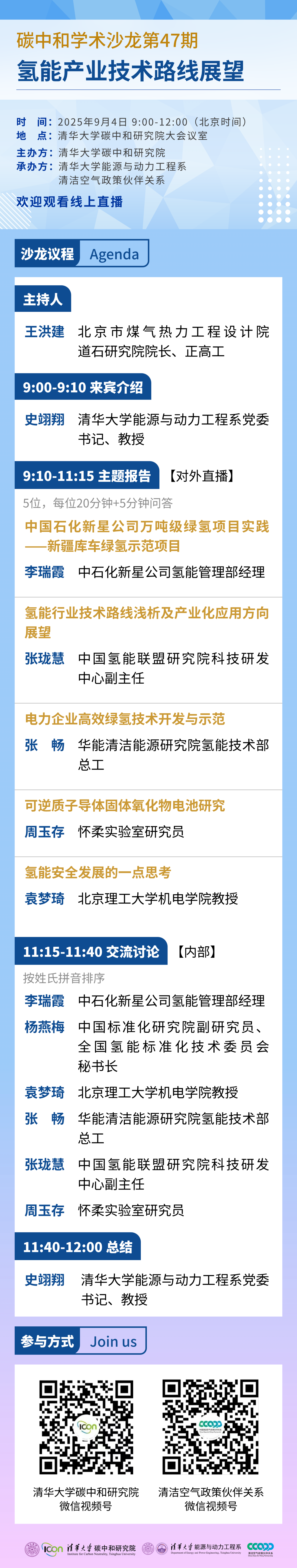 兹定于2025年9月4日上午9:00召开碳中和学术沙龙“氢能产业技术展望”,聚焦“双碳”背景下我国氢能产业技术发展现状及核心技术最新进展,重点关注制取、储运和多元化应用等方面的前沿技术研究进展,探讨我国氢能产业未来发展方向,以期助力实现碳达峰、碳中和。