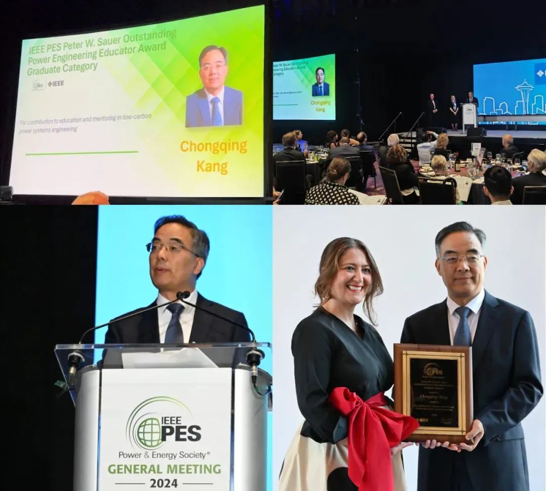 康重庆教授由于在低碳电力系统教育与学生培养方面的突出贡献荣获研究生教育领域IEEE PES Peter W. Sauer杰出电力工程教育奖。IEEE PES主席谢伊·巴赫拉米拉德博士(Dr. Shay Bahramirad)为康重庆颁发获奖证书,颁奖词为“For contribution to education and mentoring in low-carbon power systems engineering.”